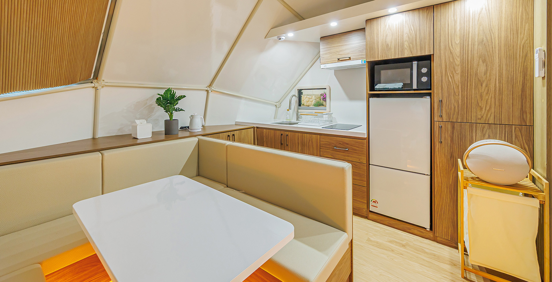 에어컨 , 취사도구(4인용 수저, 컵, 냄비, 프라이팬 등), 식탁, 전자레인지, 어메니티 제공(샴푸, 바디워시 등)